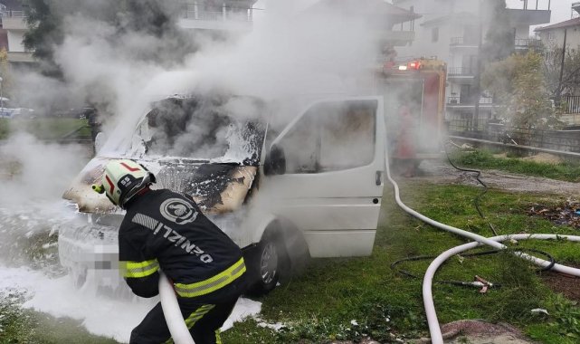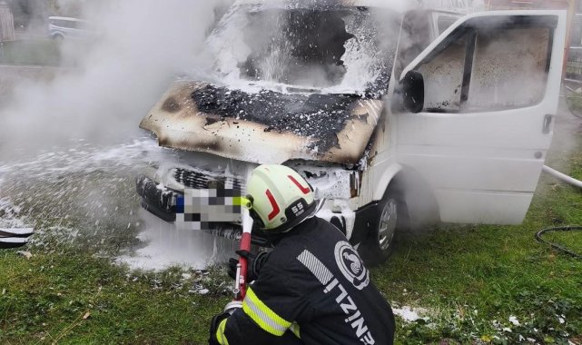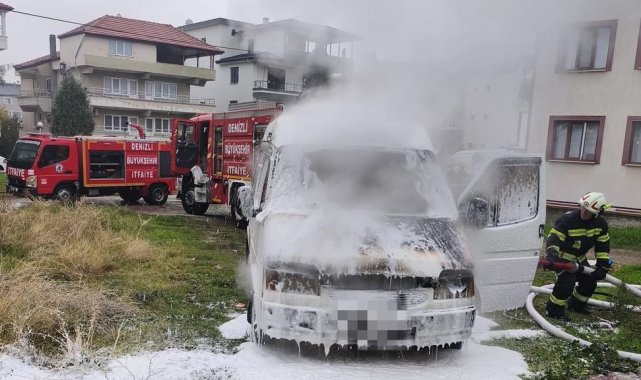Denizli'de park halindeki minibüs, henüz bilinmeyen nedenden ötürü çıkan yangınla alevlere teslim oldu. Ekiplerin yoğun çalışması sonucu yangın söndürülürken, araç kullanılamaz hale geldi.