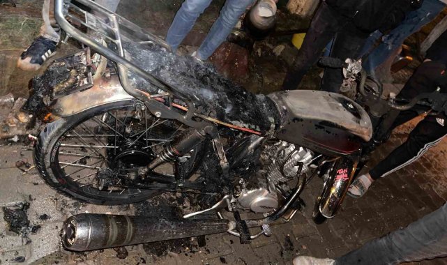 Adıyaman'ın Besni İlçesi'nde park halindeki bir motosiklet alev alarak yandı.