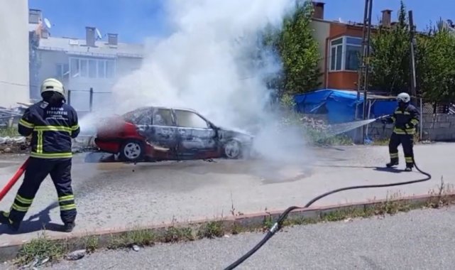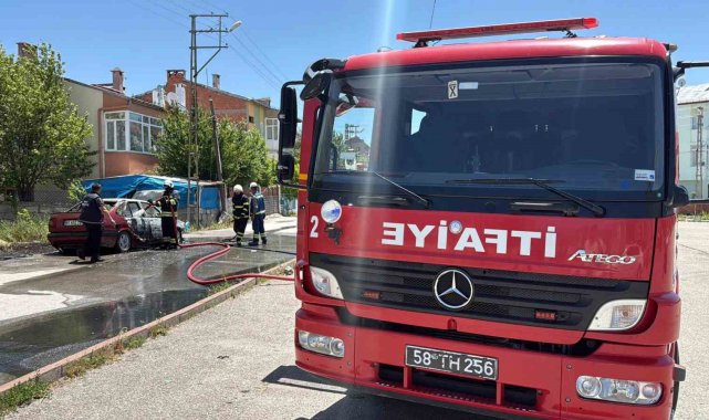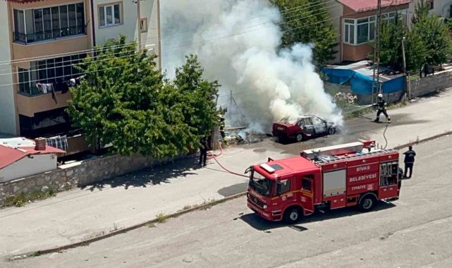 Sivas'ta park halindeki bir otomobil alev topuna döndü. Yanarak kullanılamaz hale gelen araç, itfaiye ekiplerince söndürüldü.