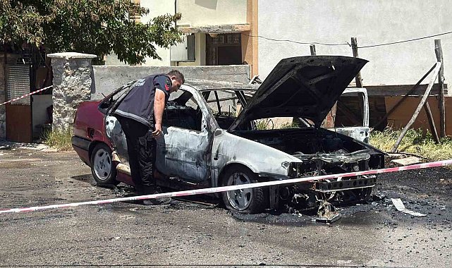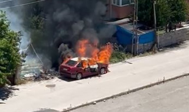 Park halindeki otomobil alev topuna dönerek kullanılamaz hale geldi