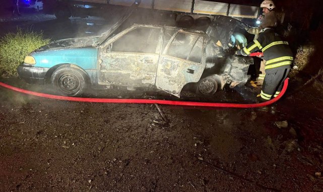 Hatay'da park halindeyken alevlere teslim olan otomobil kullanılmaz hale geldi.