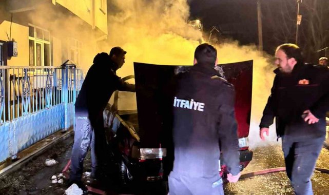 Karabük'ün Yenice ilçesinde park halindeki otomobil alevlere teslim olurken, yangın itfaiye ekiplerinin hızlı müdahalesiyle çevredeki evlere sıçramadan söndürüldü.