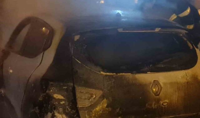 Hatay'da park halindeyken alevlere teslim olan otomobilde hasar oluştu.