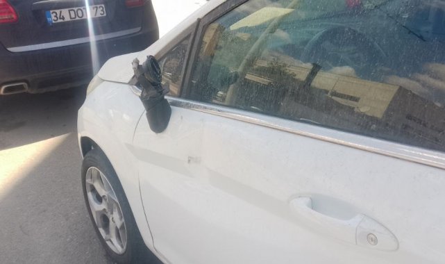 Şanlıurfa'da kimliği belirsiz bir şahsın park halindeki aracı kaportasını tekmeleyip ezerek aynasını kırdığı anlar güvenlik kamerasına yansıdı.