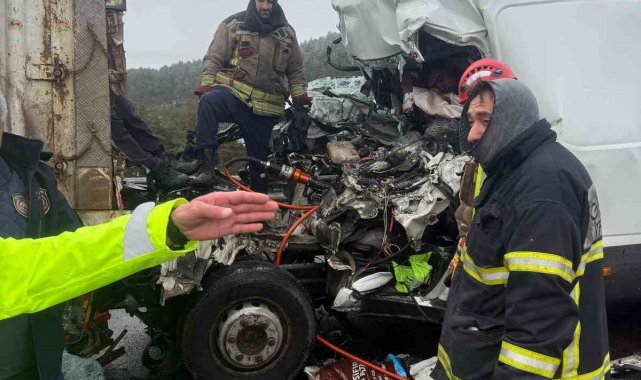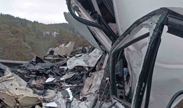 Bolu'da park halindeki tırın dorsesine çarpan minibüs sürücüsü hayatını kaybetti.