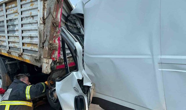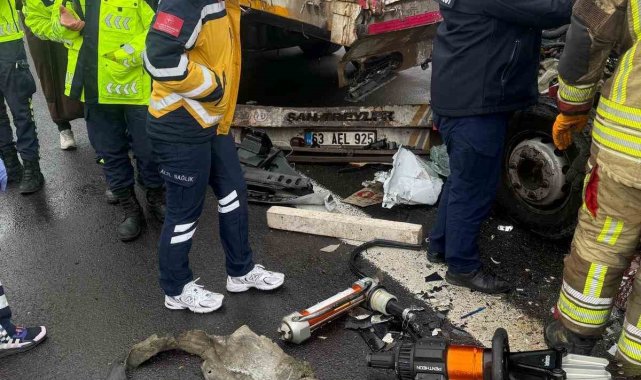 Park halindeki tıra çarpan minibüs kağıt gibi ezildi: 1 ölü