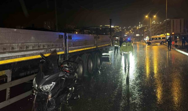 Düzce'de sağanak yağış sebebi ile kayganlaşan yolda motosiklet park halindeki tıra arkadan çarptı. Kazada sürücü ağır yaralandı.