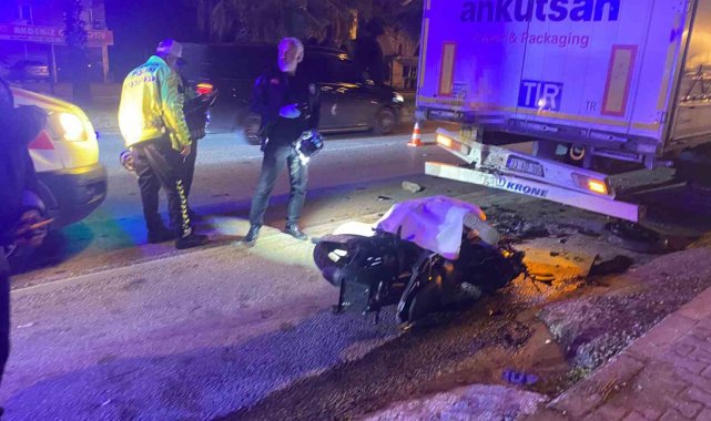 Antalya'nın Serik ilçesinde motosiklet, park halindeki tıra çarptı. Kazada motosikletin 20 yaşındaki sürücüsü hayatını kaybetti.