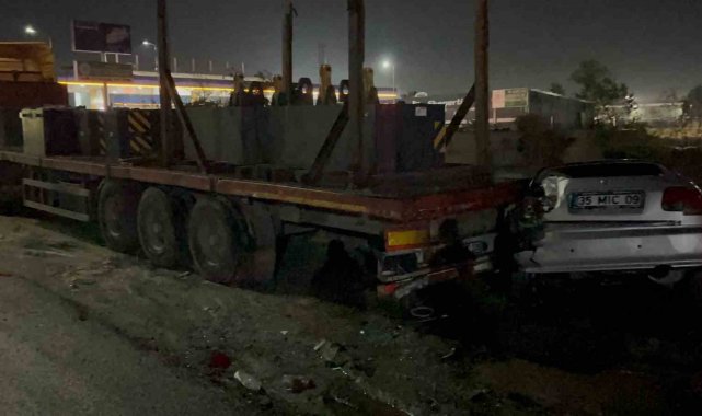 Park halindeki tıra çarpan otomobildeki 2 kişi yaralandı