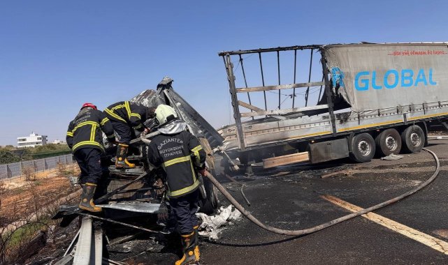 Olay, Gaziantep-Nizip otoyolunda meydana geldi. İddiaya göre, Halit A. idaresindeki 53 K 1678 plakalı tır, hareket halindeyken kontrolden çıkarak sağ şeritte park halinde olan bir başka tıra çarptı. Feci kaza sonrası, çarpan tır savrularak alev topuna döndü. Çıkan yangın olay yerine itfaiye ekipleri tarafından yapılan müdahale ile söndürüldü. Yaralı sürücü ise olay yerine gelen sağlık ekipleri tarafından yapılan ilk müdahalenin ardından Nizip Devlet Hastanesi'ne kaldırıldı.