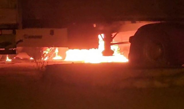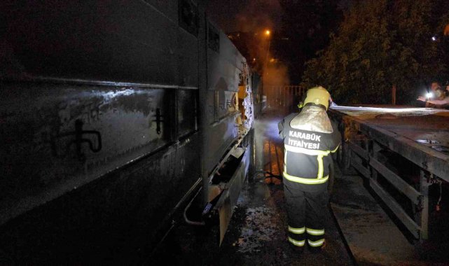 Karabük'te kimliği belirsiz kişi veya kişilerce yanıcı madde dökülerek ateşe verilen iki tırın dorsesinde maddi hasar oluştu.