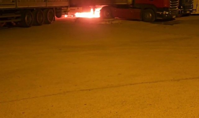 Şüphelilerin önce tır lastiklerine yanıcı ve uçucu madde sürerek yakmaya çalıştıkları, ardından da başarılı olamayınca dorseleri ateşe verdikleri öğrenildi.