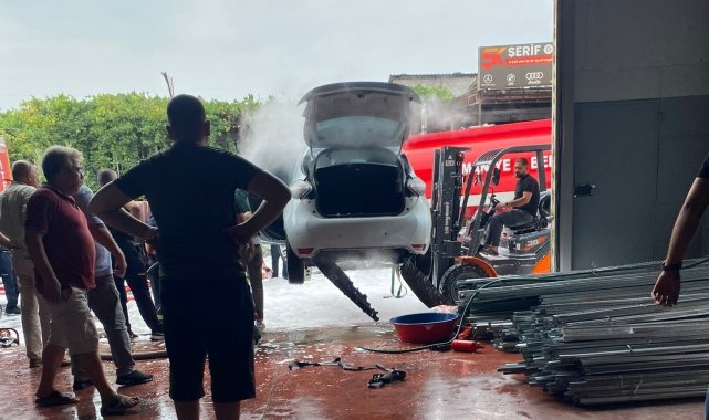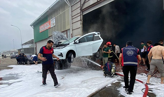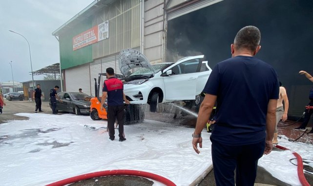 Yangın, Adnan Menderes Mahallesi küçük sanayi sitesi içerisinde meydana geldi. Edinilen bilgiye göre, PVC işiyle uğraşan Veysel Güllü'ye ait elektrikli otomobilden işyeri içerisinde park halindeyken birden dumanlar yükseldi. Dumanı fark eden Güllü ve işyeri çalışanları durumu itfaiye bildirdi. İtfaiyenin gelmesiyle müdahale edilen araç çevredeki vatandaşların yarımıyla halatlarla işyeri dışına çıkarıldı. Bir anda işyerini kaplayan dumanlar arasında otomobili dışarı çıkaran vatandaşlar muhtemel bir facianın önüne geçti. Yanan otomobil forklift üzerinde müdahale eden itfaiye ekipleri yangını söndürmek için saatlerce mücadele verdi.