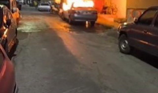 Park halindeyken yanmaya başlayan otomobil için mahalleli seferber oldu