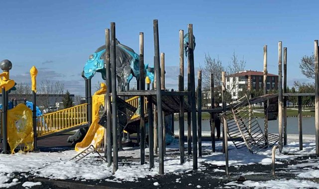 Tekirdağ'ın Ergene ilçesinde çocukların yaktığı ateş nedeniyle parktaki oyun grupları alev alev yandı.