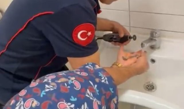 Edinilen bilgiye göre, parmağına sıkışan yüzüğü çıkartamayan kadın, Kastamonu Eğitim ve Araştırma Hastanesi Acil Polikliniğine müracaat etti. Hastane personeli tarafından Kastamonu itfaiyesine bilgi verildi. Hastaneye gelen itfaiye ekibi, özel aparatlarla yüzüğü keserek çıkardı.