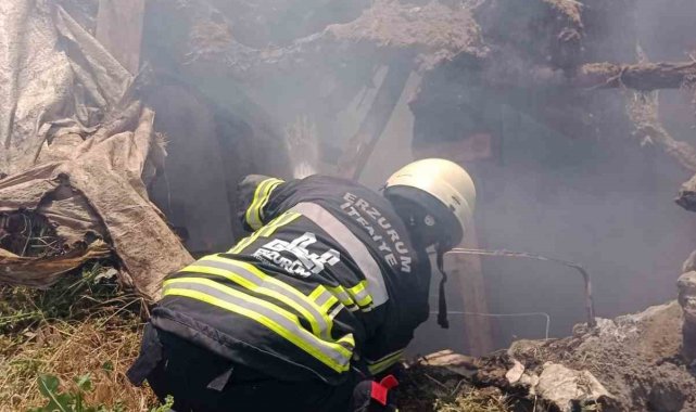 Erzurum'da meydana gelen ahır yangına zamanında müdahale eden itfaiye ekipleri uzun uğraştan sonunda alevleri kontrol altına aldı.
