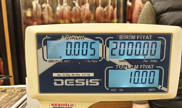 Güzel, pastırmanın fiyatının hayvanın bölgesine göre değiştiğini söyleyerek, "2 bin TL'ye sattığımız pastırmanın bir dilimi yaklaşık 5 gram geldi. Onun da bir dilim fiyatı 10 TL'ye tekamül ediyor. Kilosu 3 bin 200 TL olan en iyi pastırmamızın da bir dilimi 10 gram geldi. Onun fiyatı da 32 TL'ye tekamül ediyor. Aradaki farklar yumuşaklık. Etin hayvandan çıkış kısmı. Uygun fiyatlı olarak sattığımız pastırma hayvanın but kısmından çıkar. Yüksek fiyatlı olan ise hayvanın sırt bölümünden çıkar. Yani pastırmanın dilimi 10 TL'den başlıyor 32 TL'ye kadar farklılık gösterebiliyor" ifadelerini kullandı.