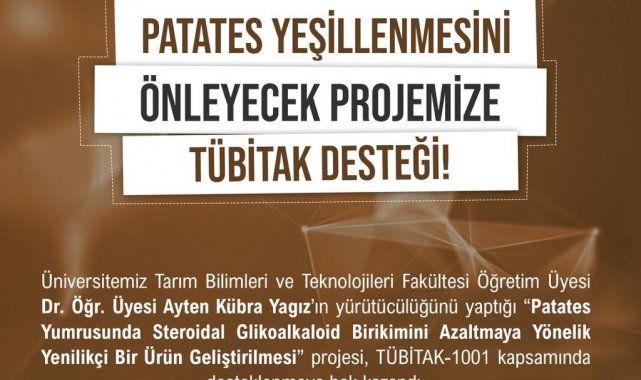Patates yeşillenmesine çözüm üreten projeye TÜBİTAK desteği