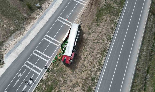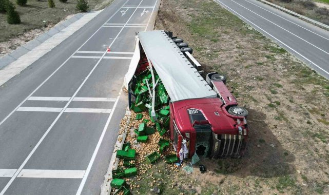 Kaza, Bolvadin ilçesi OSB Kavşağı'nda meydana geldi. Edinilen bilgilere göre, A.K., idaresindeki 42 V 4800 plakalı patates yüklü tır sürücüsünün henüz belirlenemeyen bir sebepten ötürü direksiyon hakimiyetini kaybetmesi sonucu kontrolden çıkarak refüje devrildi. Kazada sürücü ile birlikte K.K. ve M.E., yaralandı. Yaralılar kaza sonrası çevredekilerin haber vermesi üzerine olay yerine gelen ambulanslarla hastanelere kaldırıldı. Büyük çapta maddi hasarın meydana geldiği kazada, tırın dorsesinde kasalar içinde taşınan tonlarca patates ise çevreye dağıldı.