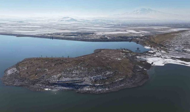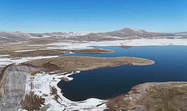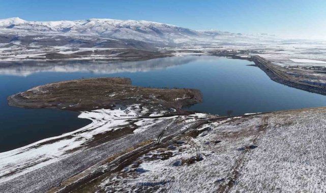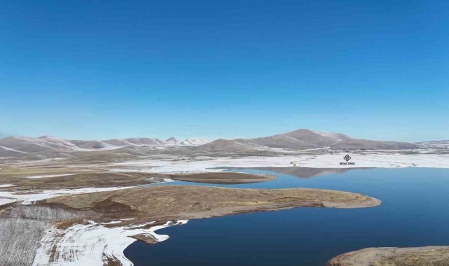 Patnos barajında kış güzelliği; Mavi ve beyazın buluşması