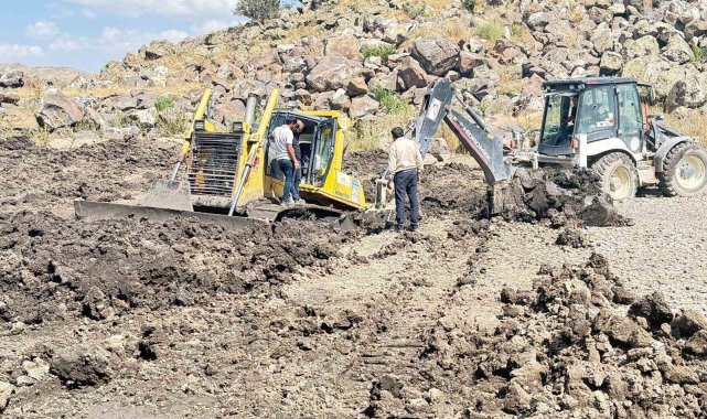 Ancak çalışmalar sırasında ekipler beklenmedik bir durumla karşılaştı. Köy yollarında su hattı açma çalışması yapan dozer, arazinin yumuşak zemininde bataklığa saplandı. İlçe Özel İdaresi personeli, uzun uğraşlar sonunda dozeri kurtararak çalışmalara kaldığı yerden devam etti. O anlar, bölgede bulunan vatandaşlar tarafından merakla izlendi.