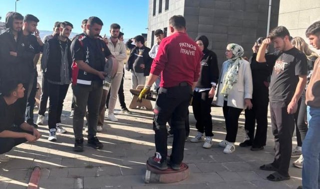 Patnos İtfaiye Müdürlüğü ekipleri, Meslek Yüksekokulu öğrencilerine yangın anında doğru davranışları öğretmek amacıyla teorik ve uygulamalı eğitim verdi.