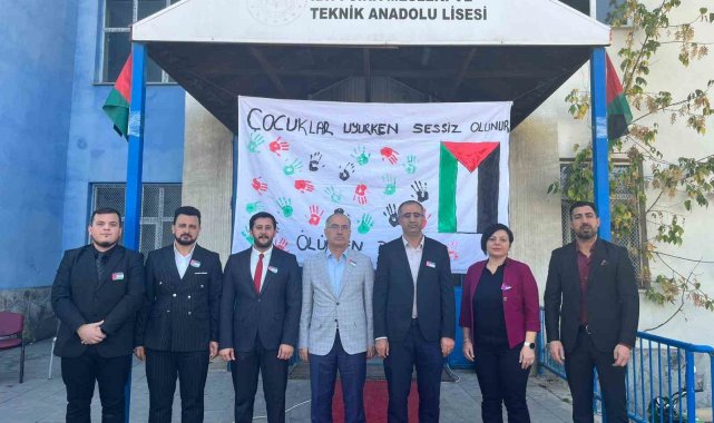 Milli Eğitim Bakanlığınca Türkiye'deki tüm okullarda bugün başlatılan "Filistin Farkındalık Etkinlikleri" kapsamında Patnos'taki İbni Sina Meslek Lisesin'de öğrenciler okul bahçesinde bir araya geldi.
