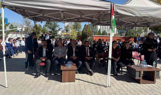 Öğrenciler okulda Türk ve Filistin bayrakları açılarak İsrail'i protesto ettiler.