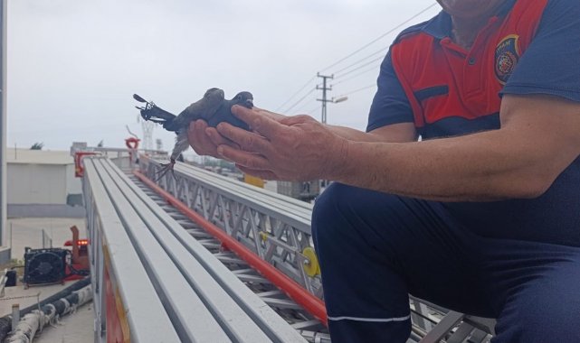 Payas Sanayi Sitesi'nde bulunan bir iş yerinin tabelasına ayağı dolanan güvercini fark eden vatandaşlar durumu itfaiye ekiplerine bildirdi. Kısa sürede bölgeye gelen itfaiye ekipleri, merdivenle güvercini sıkıştığı yerden kurtardı. Sağlık kontrolü yapılan ve beslenen güvercin doğaya bırakıldı.