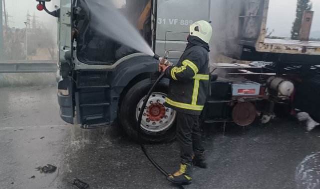 Hatay'da seyir halindeyken alevlere teslim olan tırda çıkan yangını itfaiye söndürdü.