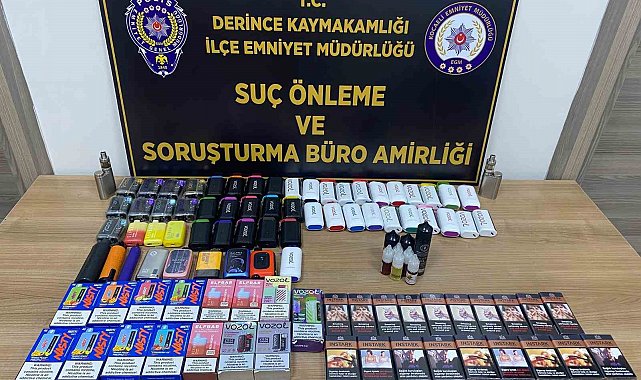 Kocaeli İl Emniyet Müdürlüğünce kaçakçılık faaliyetlerinin men ve takibine yönelik çalışma başlatıldı. Yapılan çalışmalar neticesinde bugün Derince ilçesi Yenikent Mahallesi'ndeki kapalı pazarda yapılan kontrollerde 73 elektronik sigara, gümrük kaçağı 19 sigara, elektronik sigara dolumunda kullanılan 8 likit ele geçirildi. Malzemelere el konurken, pazar tezgahının sahibine 5607 SKM suçundan adli işlem yapıldı.