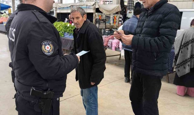 DÜZCE(İHA) – Düzce'nin Gümüşova ilçesinde polis ekipleri halk pazarında vatandaşları dolandırıcılık olaylarına karşı hem uyardı hem de uyarıcı el broşürü dağıtıldı.
