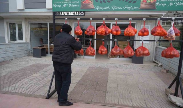 Samsun'un Atakum ilçesine bağlı Atakent Mahallesi'nde Muhtar Recep Ali Yıldırım tarafından hayata geçirilen "Askıda Sebze ve Meyve Projesi" ile ihtiyaç sahipleri, muhtarlık önünde kurulan stanttan ücretsiz sebze ve meyve temin edebiliyor.