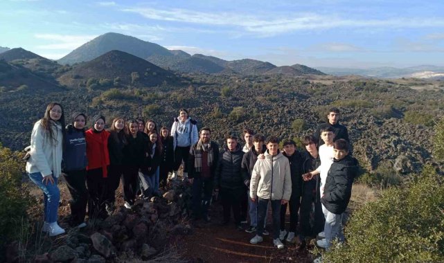 Güne Kula Volkanik Sahası'nda başlayan 20 kişilik öğrenci grubu, Coğrafya Öğretmeni Rıdvan Koca rehberliğinde UNESCO tescilli Kula-Salihli Jeoparkı'nı inceledi. Türkiye'nin en genç volkanik bölgesinde lav tüplerinden cüruf konilerine kadar tüm oluşumları yerinde gören gençler, coğrafya dersini "yanık ülke" olarak bilinen sahada yaşayarak öğrendi.