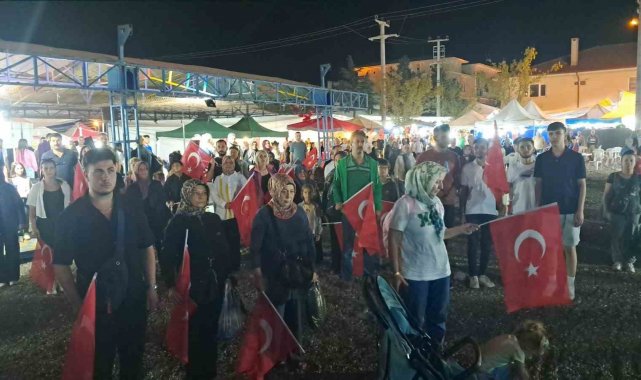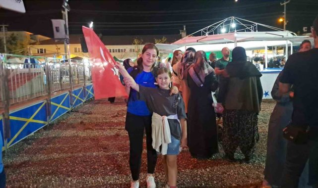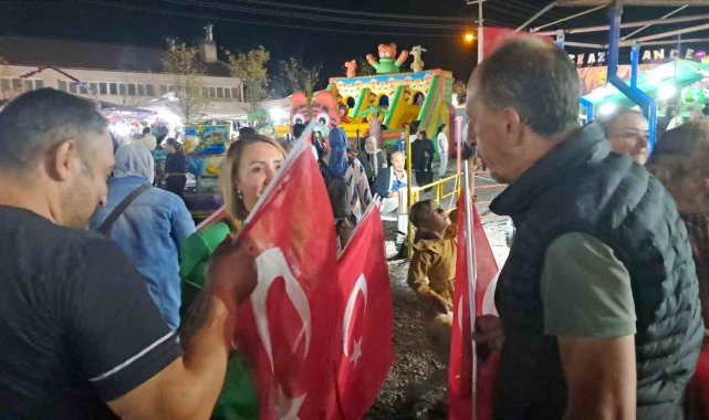 Ellerinde al bayraklarla toplanan binlerce kişi, hep birlikte saygı duruşunda bulundu ve İstiklal Marşı'nı gür sesle okudu. Panayır alanı adeta kırmızı beyaz renklere bürünürken, vatandaşların coşkusu görülmeye değerdi.