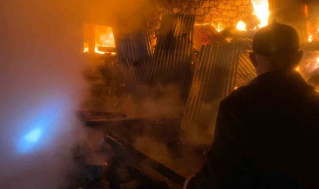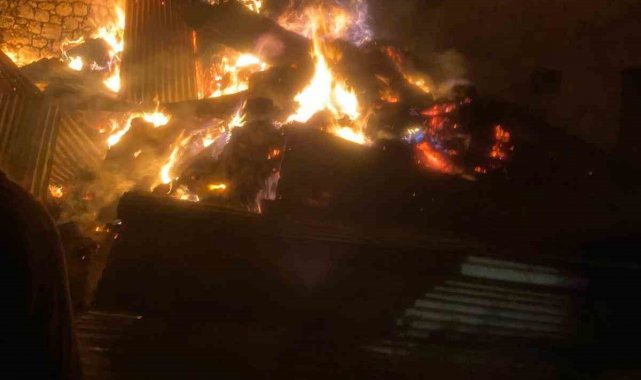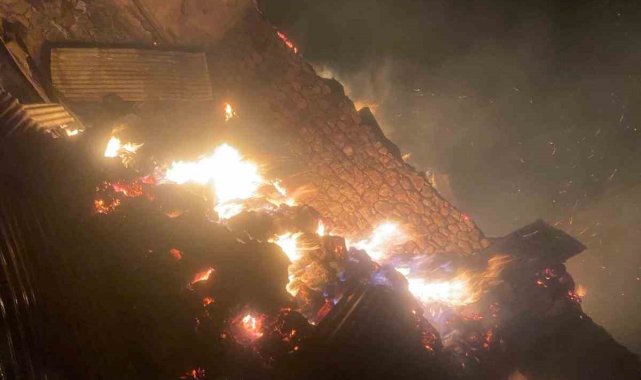 Erzurum'un Pazaryolu ilçesinde meydana gelen yangında 5 ev, 2 ahır ve 2 samanlık yandı.