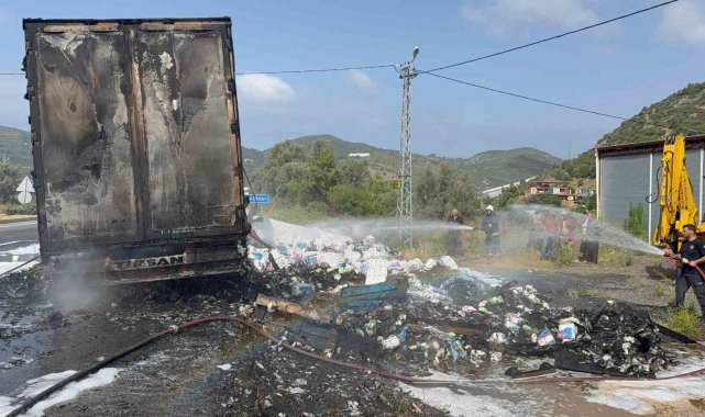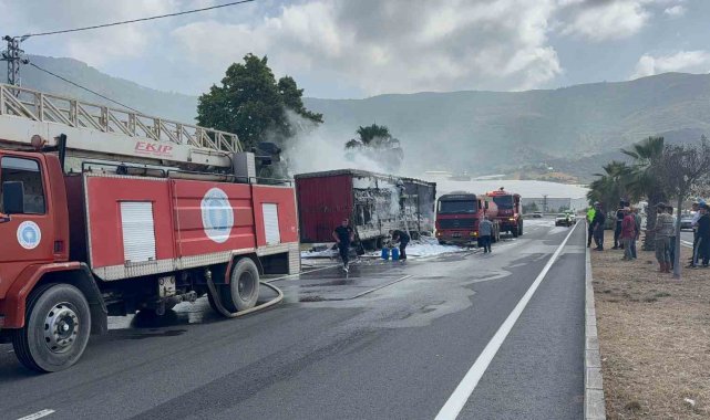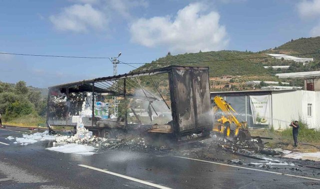 Peçete yüklü tır alev alev yandı