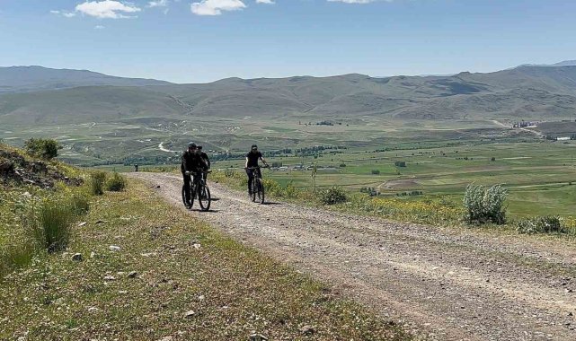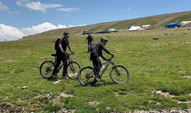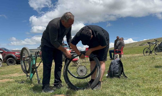 Erzurum'da bir grup bisikletçi kent merkezinden yaklaşık 50 km uzaklıktaki Dumlu Baba Yaylası'na pedal çevirdi.