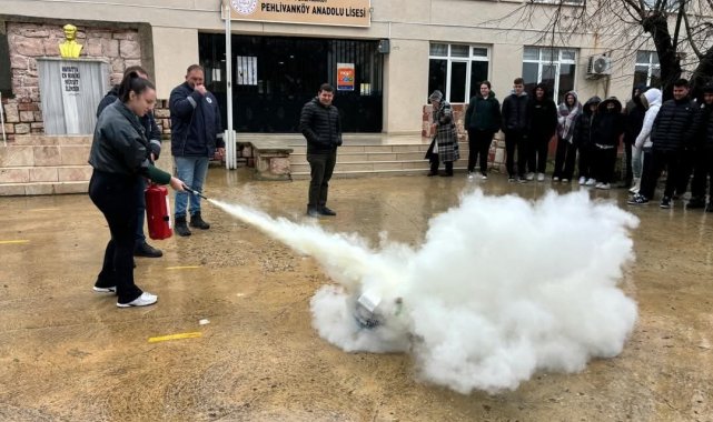 Pehlivanköy'de lise öğrencilerine yangın tatbikatı eğitimi