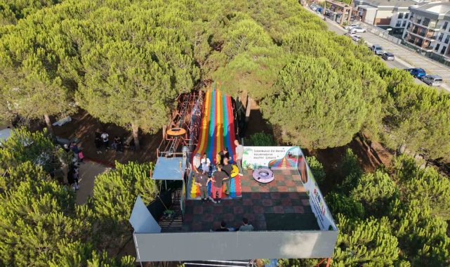 Pendik Korusu'nda açılan ve aynı anda 10 kişinin kaymasına imkân tanıyan 161 metrelik dev kaydırak, özellikle çocuklar ve gençlerin yoğun ilgisini çekiyor. 3 yaş üzeri herkesin kullanımına uygun olan kaydırak, kısa sürede korunun en eğlenceli noktası haline geldi. Açıldığı günden bu yana 7'den 70'e her yaştan ziyaretçinin uğrak noktası olan Pendik Korusu, renkli kaydırakla birlikte adrenalin ve eğlenceyi bir arada sunuyor. Öte yandan eğlence dolu anlar havadan görüntülendi.