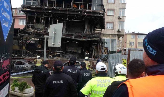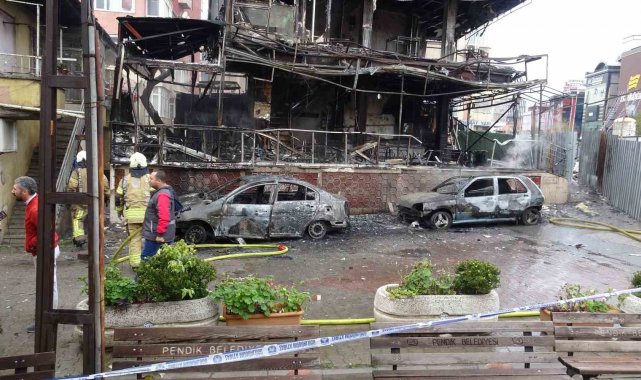 Pendik'te araçtaki yangın çevre binalara sıçradı: 2 araç ve kafe küle döndü