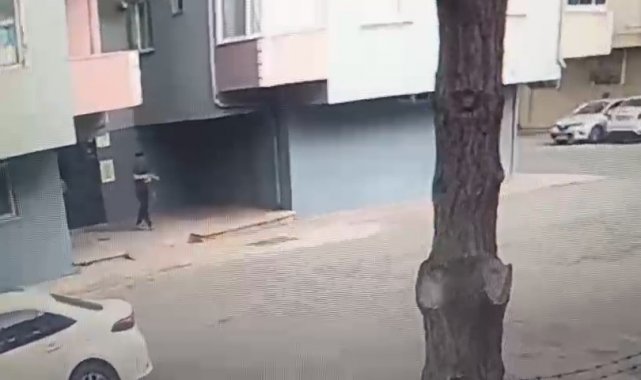 Cinayet zanlısının cinayet gerçekleştirdiği binadan ayrıldığı anlar güvenlik kamerasına yansıdı.