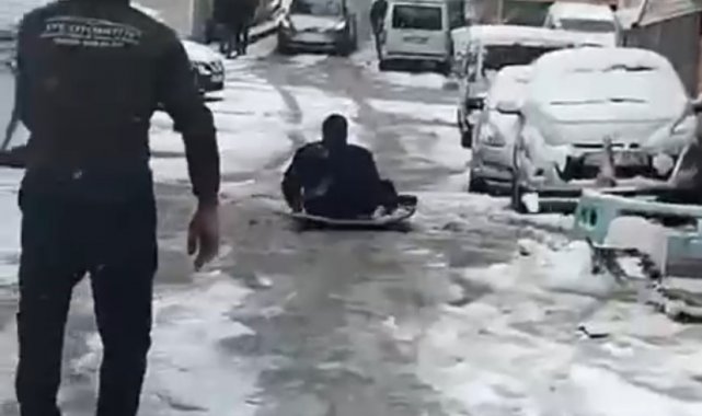 İstanbul'da etkili olan kar yağışı, Pendik'te eğlenceli görüntülere sahne oldu. Araç kaportasıyla kayan bir grup genç, karın tadını doyasıya çıkardı.