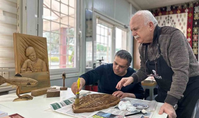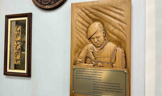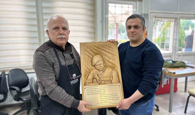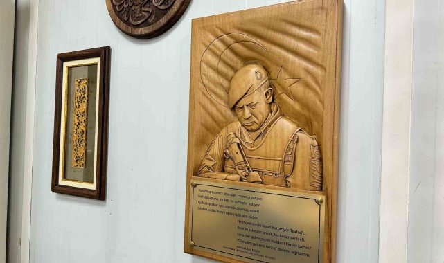 Pendik'te işitme engelli kursiyerden anlamlı eser: Ömer Halisdemir'in ahşap portresini yaptı