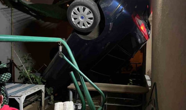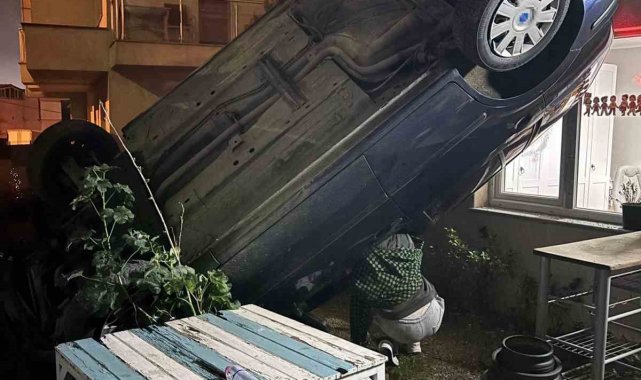 Pendik'te otomobil apartman bahçesine uçtu: 2 yaralı