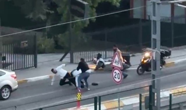Olay, Pendik Doğu Mahallesi'nde geçtiğimiz gün meydana geldi. İddiaya göre, yol verme meselesi yüzünden motosiklet sürücüleri ile otomobil sürücüsü arasında tartışma çıktı. Tartışma kısa sürede kavgaya dönüştü. Taraflar birbirlerine yumruklarla saldırdı, bir kişi karşısındakinin başına kaskla vurdu. Kavga sırasında şahıslardan biri otomobilden aldığı bıçağı karşı tarafa savurdu. Bir başka şahıs ise karşısındakini yere yatırarak darp etti. O anlar bir vatandaşın cep telefonu kamerasına yansıdı.