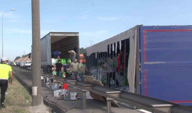 Pendik TEM Otoyolu'nda devrilen tır kaldırıldı