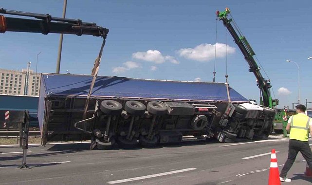 Pendik'te TEM otoyolunda sabah saatlerinde seyir halindeyken kontrolden çıkarak devrilen tır, kazadan yaklaşık 6 saat sonra vinç ile kaldırıldı. Tırın kaldırılmasıyla yoldaki trafik akışı normale döndü.