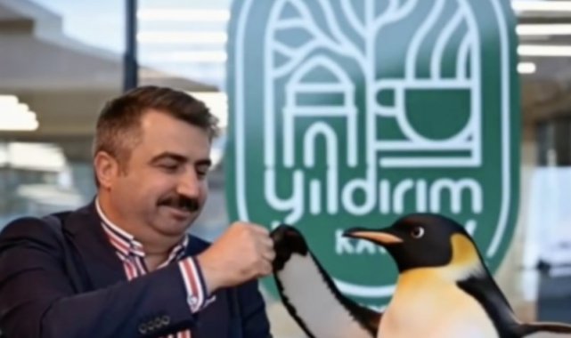 Bursa'nın Yıldırım Belediyesi de "Nereye gittiğini merak edenler olmuş" ifadesini kullanarak görüntü paylaştı. Görüntüde belediyenin tesislerine ve Belediye Başkanı Oktay Yılmaz ile yan yana penguene yer verildi.